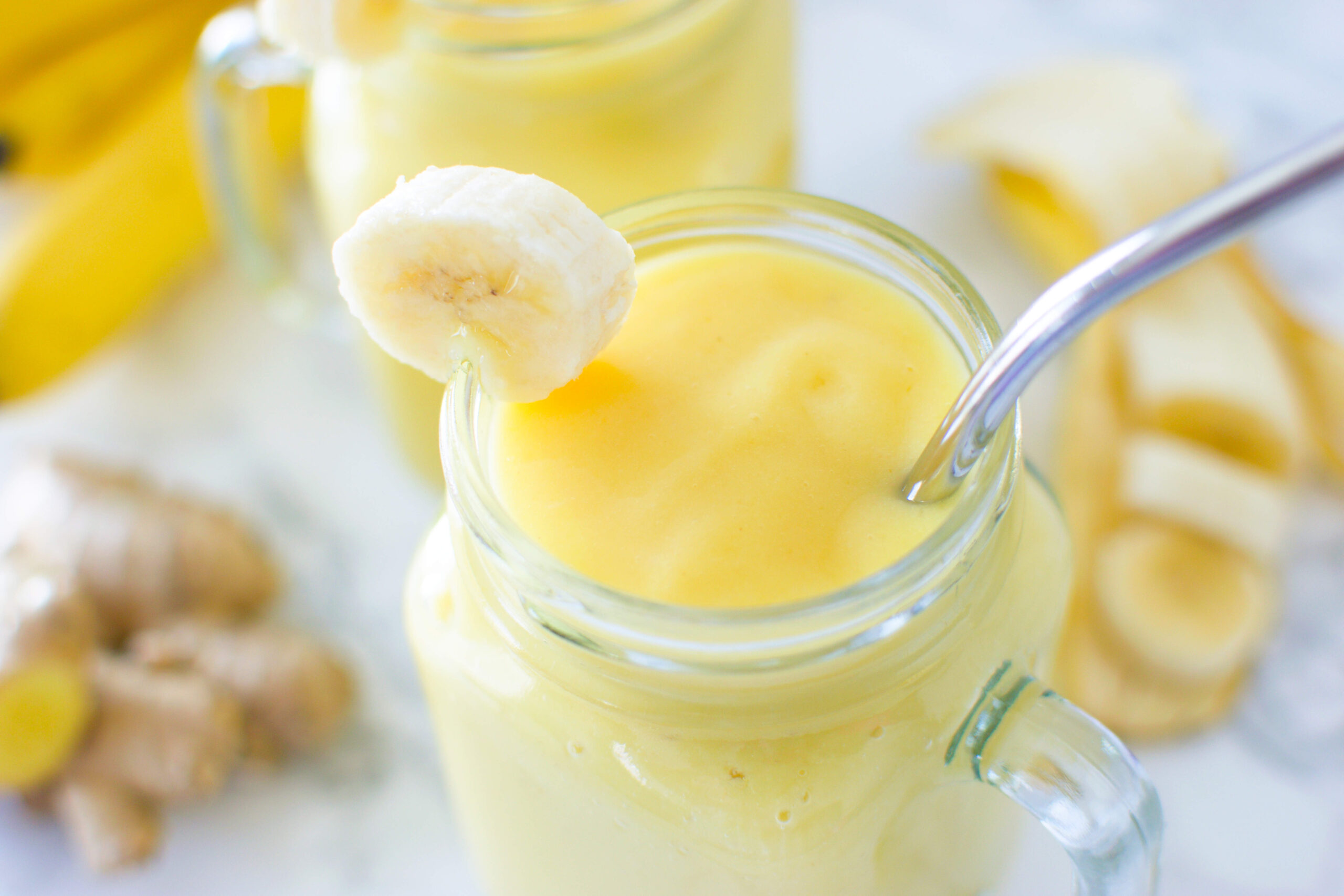 1 Add all ingredients to a blender and blend until smooth. 2 Garnish with sliced banana (optional). Enjoy!View original recipe